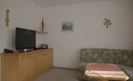 Wohnschlafraum mit Flat-Sat-TV-Anlage, Internetanschluss, CD-Radio-Player.